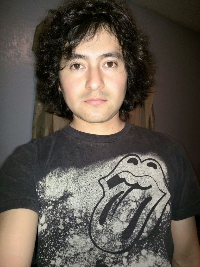 Chamarra y playera negra, pantalón de mezclilla y cabello corto. Yo.